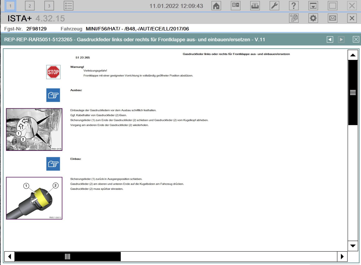 Austausch Gasdruckfedern mit SA 8TF (aktiver Fussgaengerschutz)